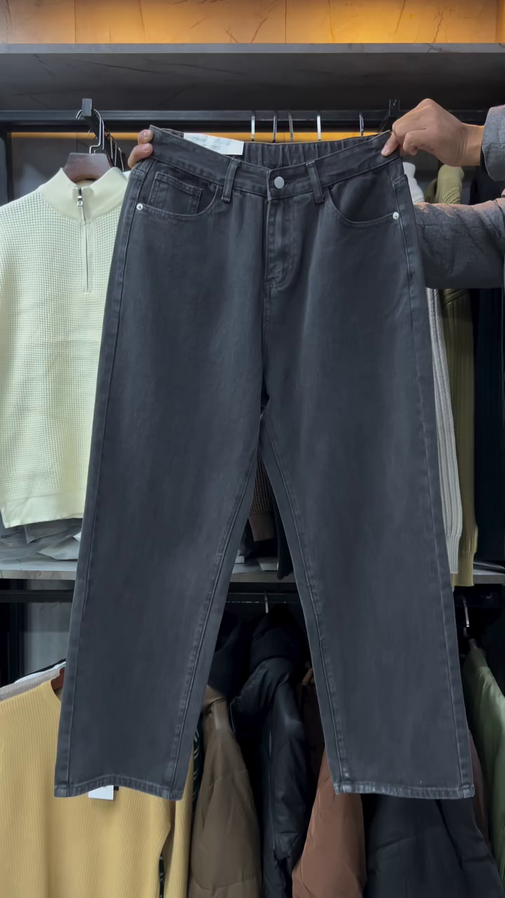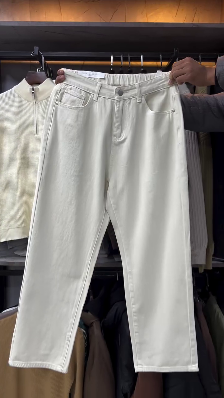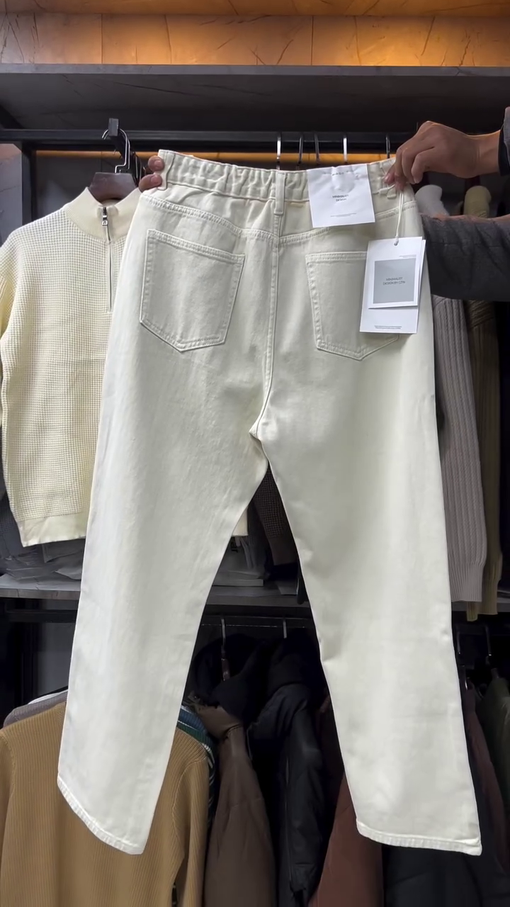 These pants feature a high-quality cotton-blend fabric that provides the structural integrity of classic denim with a softer, breathable finish. The silhouette is cut in a straight-leg fit, offering ample room through the seat and thighs without appearing baggy. One of the standout features is the discreet elasticized waistband at the sides, ensuring a flexible fit that moves with you—perfect for long days at the office or weekend outings.